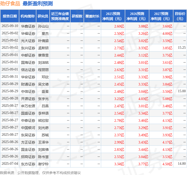 东吴证券股份有限公司苏铖,李茵琦近期对劲仔食品(003000)进行研究并发布了研究报告《2025年三季报点评:收入增速转正,利润率边际改善》,给予劲仔食品买入评级。